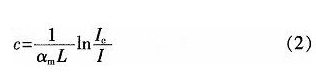 式中:αm為摩爾分子吸收系數(shù);c為待測氣體濃度;L為光和氣體的作用長度(傳感長度)。對式(1)進(jìn)行變換,得: