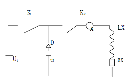 工作時(shí)取U1為U2的10倍以上,U2為電橋電源,D的反向電壓應(yīng)大于U1合K1,K2待電流表指示電流達(dá)I=U2/Rx時(shí),斷開(kāi)K1,這樣便可很快地測(cè)量了。