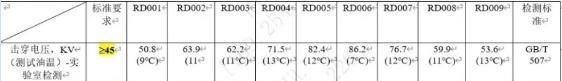 本次測試嚴格按照該標準進行,油介電強度測試數(shù)據(jù)如下: